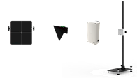 In deze kit zitten drie radar targets en een standaard waarop deze gemonteerd worden.